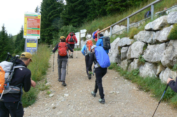 Wir sind mit insgesamt 29 Wanderern und 4 Bergführern um 14:00 Uhr an der Brauneck-Bergstation in leichtem Nieselregen gestartet und über den Brauneck-Gipfel (1555m), Latschenkopf (1670m), Probstalmsattel und Rotohrsattel (1615m) zum Gipfel der Benediktenwand (1800m) aufgestiegen.
