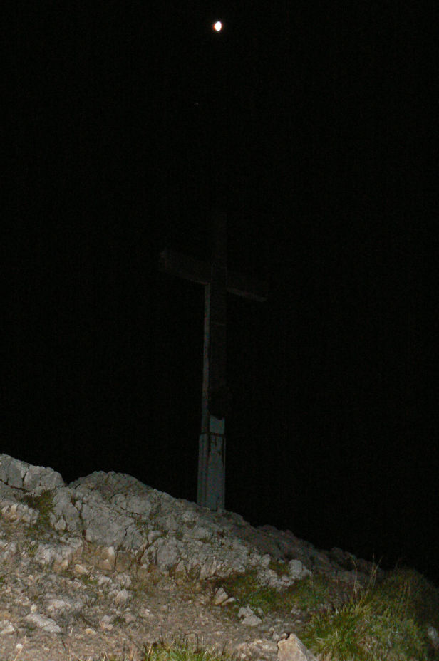 Gegen ein Uhr Nachts hatten wir im Licht des Fast-Vollmondes und unserer Stirnleuchten den Gipfel des Herzogstand (1731m) erreicht.