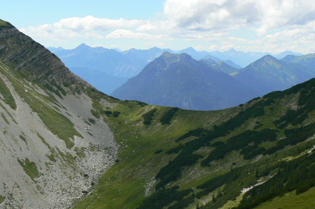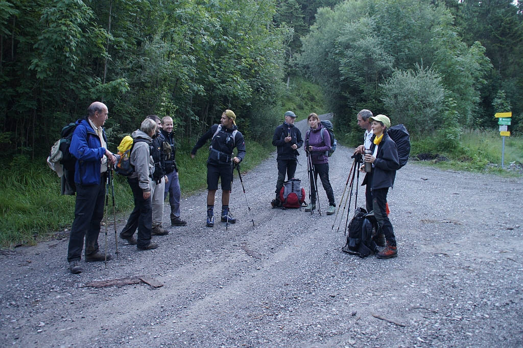 Unser Bergführer hatte schon beim Aufstieg auf die Hohe Kiste über Knieprobleme geklagt. Nun, bergab, wurde es bei ihm immer schlimmer. Er konnte kaum noch gehen. Er humpelte neben uns her und fiel immer mehr zurück.