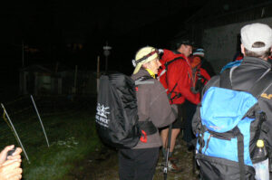 Um 03:00 Uhr hatten wir den Grat überstiegen und erklommen die letzten Metern hinauf auf den Heimgarten (1790m). Auf der dortigen Heimgartenhütte gab es gegen 03:30 Uhr als Nachtmahl eine etwas seltsame, aber in ausreichender Menge