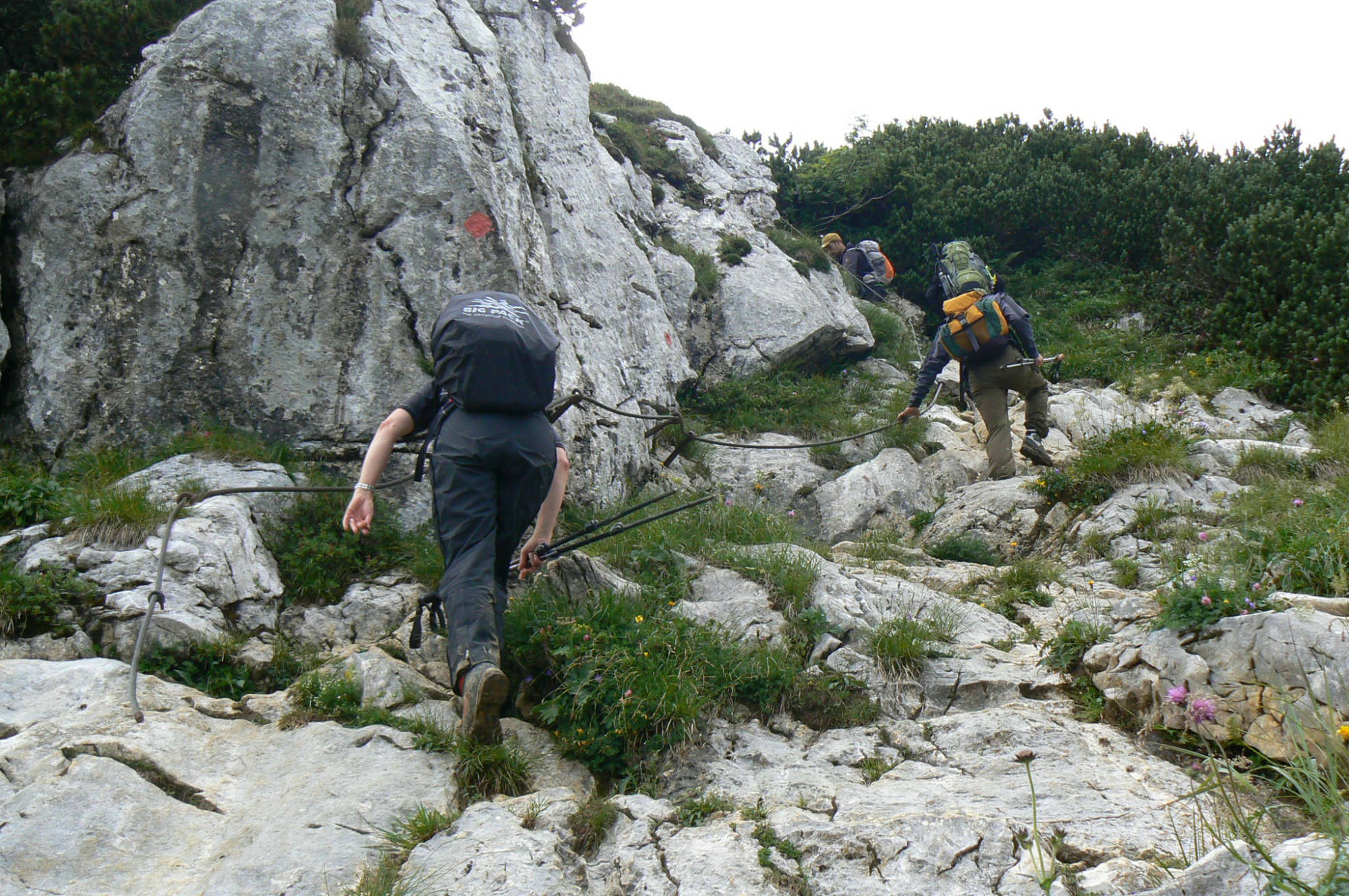 Unser Bergführer hatte schon beim Aufstieg auf die Hohe Kiste über Knieprobleme geklagt. Nun, bergab, wurde es bei ihm immer schlimmer. Er konnte kaum noch gehen. Er humpelte neben uns her und fiel immer mehr zurück.
