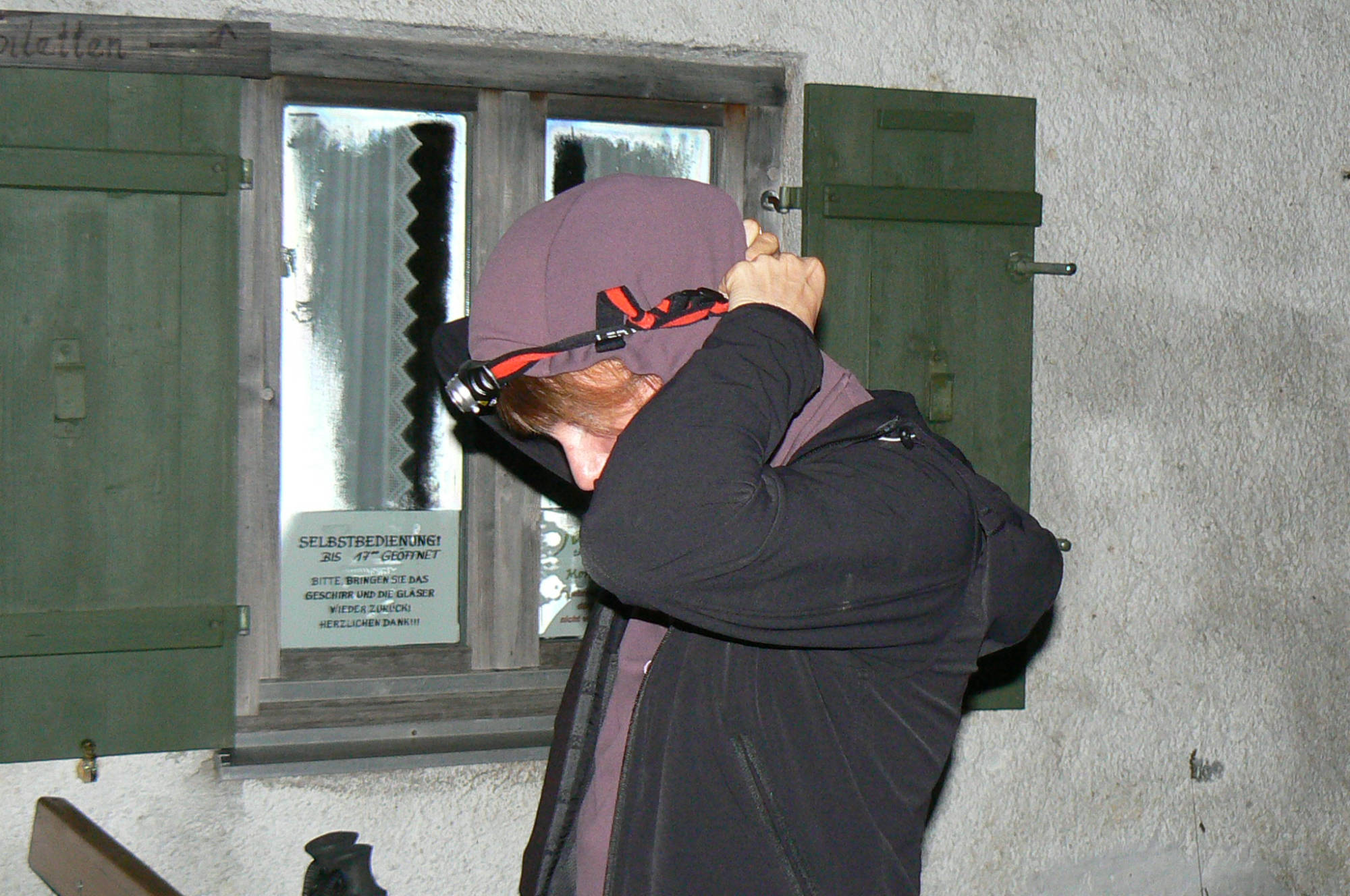 Um 03:00 Uhr hatten wir den Grat überstiegen und erklommen die letzten Metern hinauf auf den Heimgarten (1790m). Auf der dortigen Heimgartenhütte gab es gegen 03:30 Uhr als Nachtmahl eine etwas seltsame, aber in ausreichender Menge