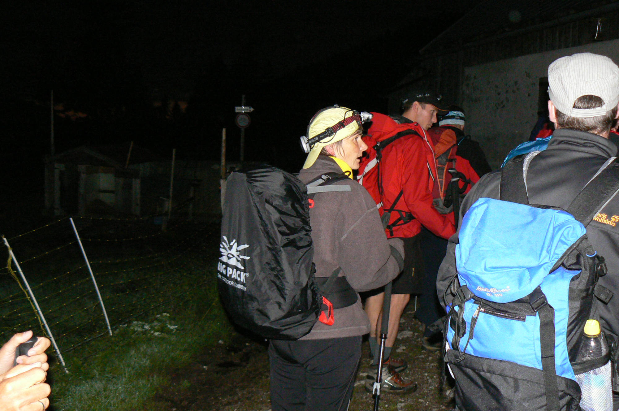 Nachdem uns die Wegführung „doch sehr spanisch“ vorkam, diskutierten wir mit ihm über die richtige Route. Er berichtigte daraufhin („geh ma halt do lang“) die Routenführung und wir kletterten nun im Licht der Stirnleuchten und des
