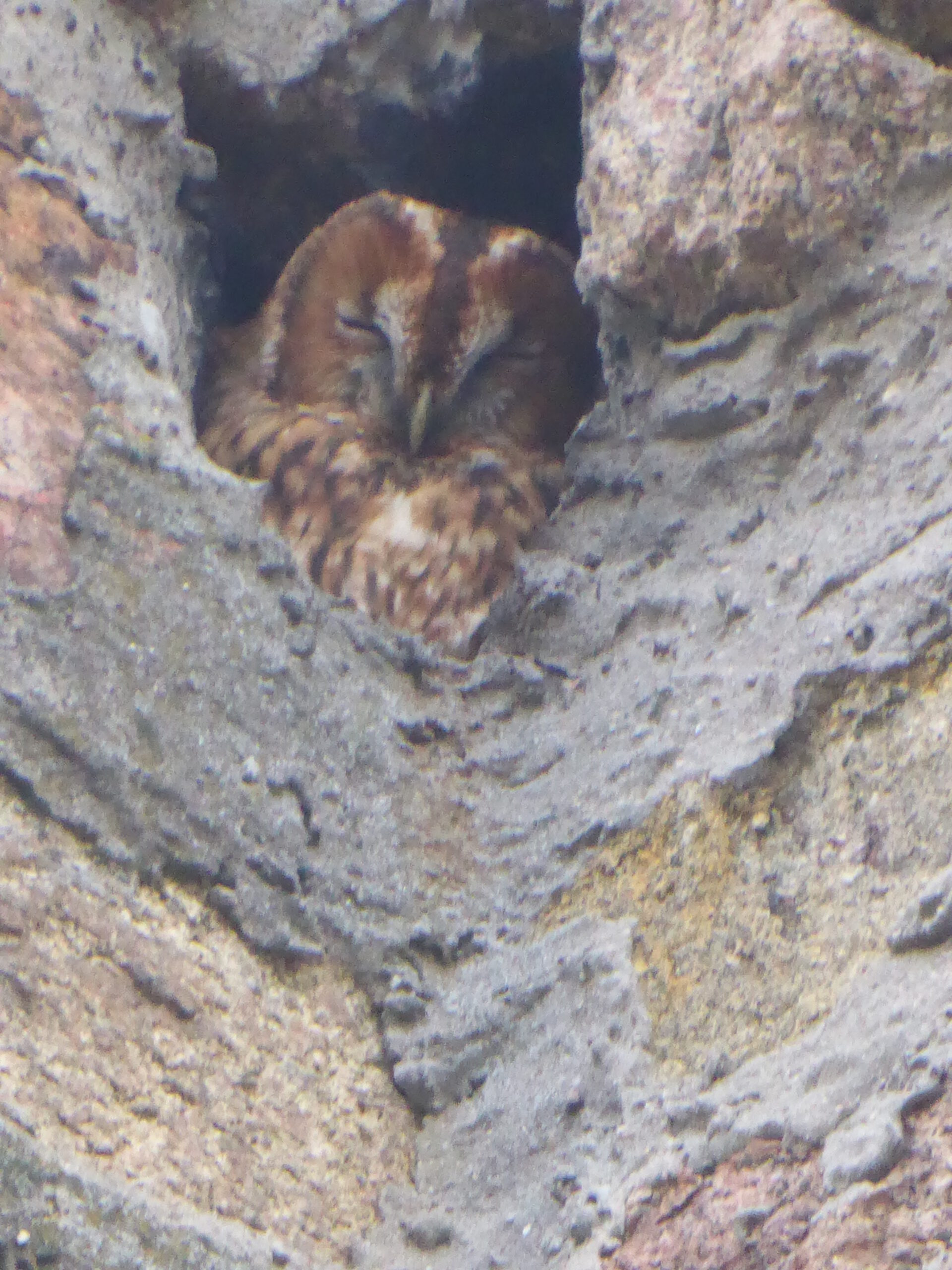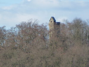 des Hemsbergturms ist ein Waldkauz der in einer Nische des Turms wohnt.