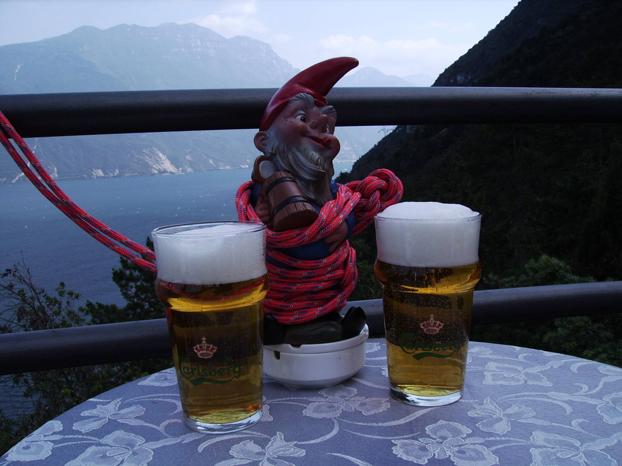 Mit ein paar Bier intus lässt sich prima klettern. Am Garda-See habe ich das an den Klettersteigen prima ausprobiert. Gut gesichert kann da nichts passieren!