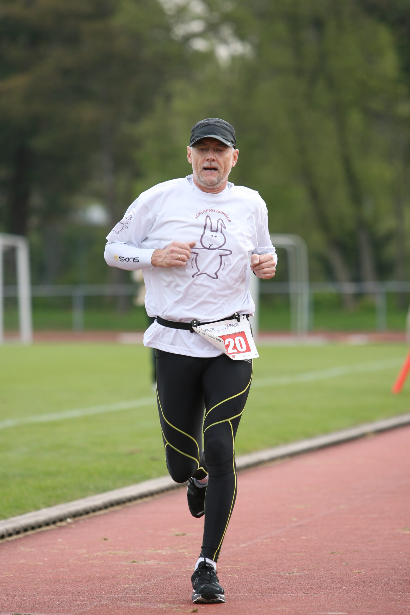 Der Startschuss fiel zu einer immerhin nicht mehr ganz unmenschlichen Zeit um 09:25 Uhr in der Frühe. Die Laufstrecke führte wie im letzten Jahr auf der “Wilhelm-Leuschner-Strasse” zweimal rauf und runter. Wer den Halbmarathon laufen wollte musste diese Strecke sogar viermal absolvieren, was wohl ziemlich langweilig werden kann. Beim “Shortie” ist man wenigstens nach zwei Runden schon im Ziel, wenn auch ziemlich außer Atem. “Shorties” sind und bleiben Hechel- oder Preßatem-Veranstaltungen.