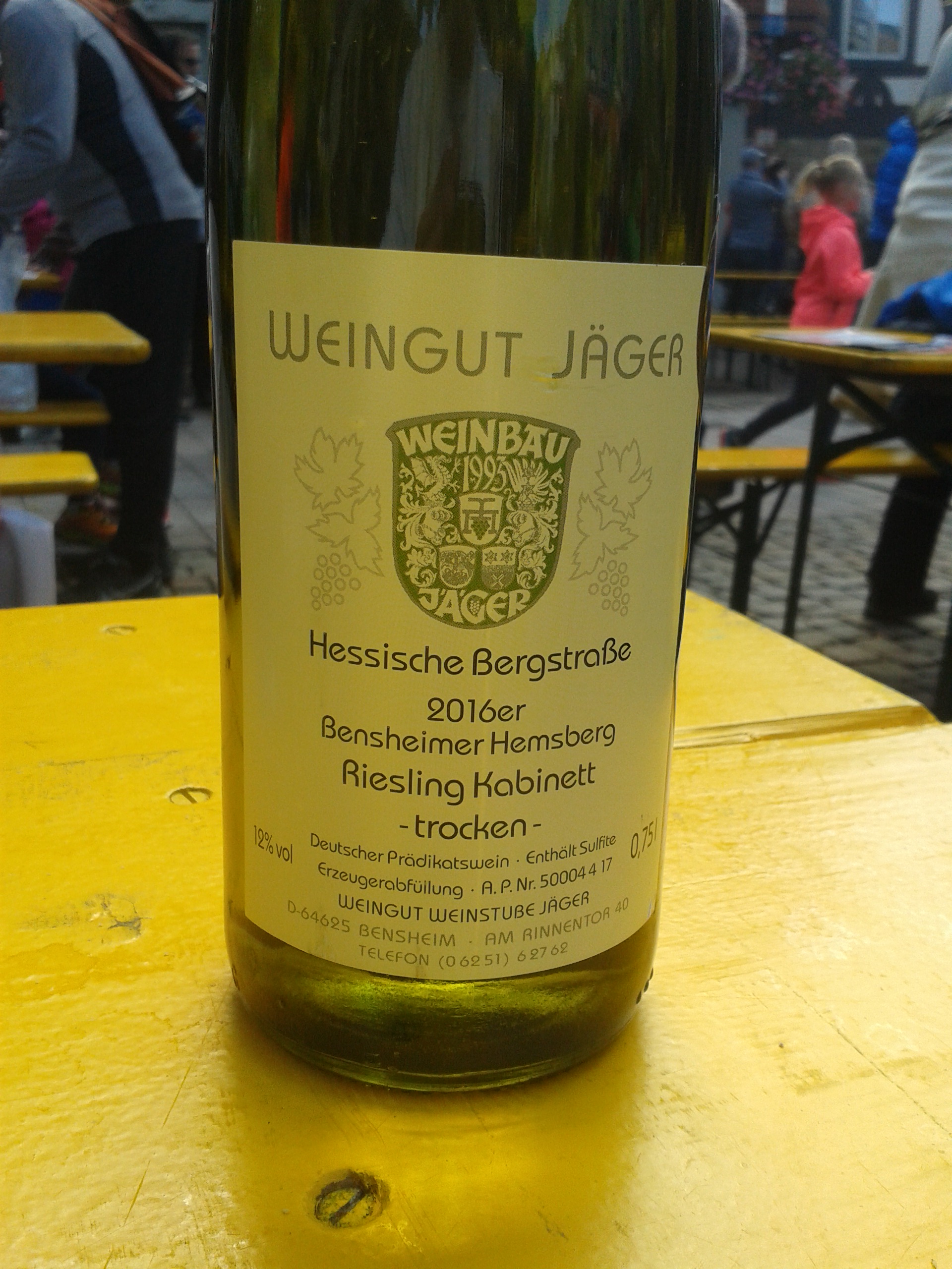 Es muss aber erwähnt werden, dass alle Sieger der Altersklassen jeweils eine Flasche Riesling (Kabinett, trocken) “Bensheimer Hemsberg” (also der Hausberg der Schlappelappings) vom Weingut Jäger als Sieger-Präsent überreicht bekamen. Der Wein mundete ausgezeichnet.