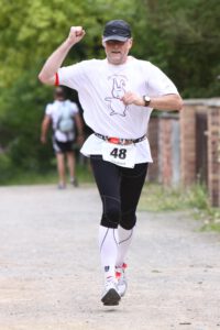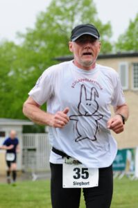 Dies gelang Siegbert auch mit 1:13:00:01 (Mist: 0,2 Sekunden weniger und es wären 01:12 herausgekommen!). Egal, mit dieser Zielzeit lief er persönliche Bestzeit beim Frankensteinlauf und wie im Vorjahr auf den 1. Platz der AK und kam als 25. in der Gesamtwertung ins Ziel.