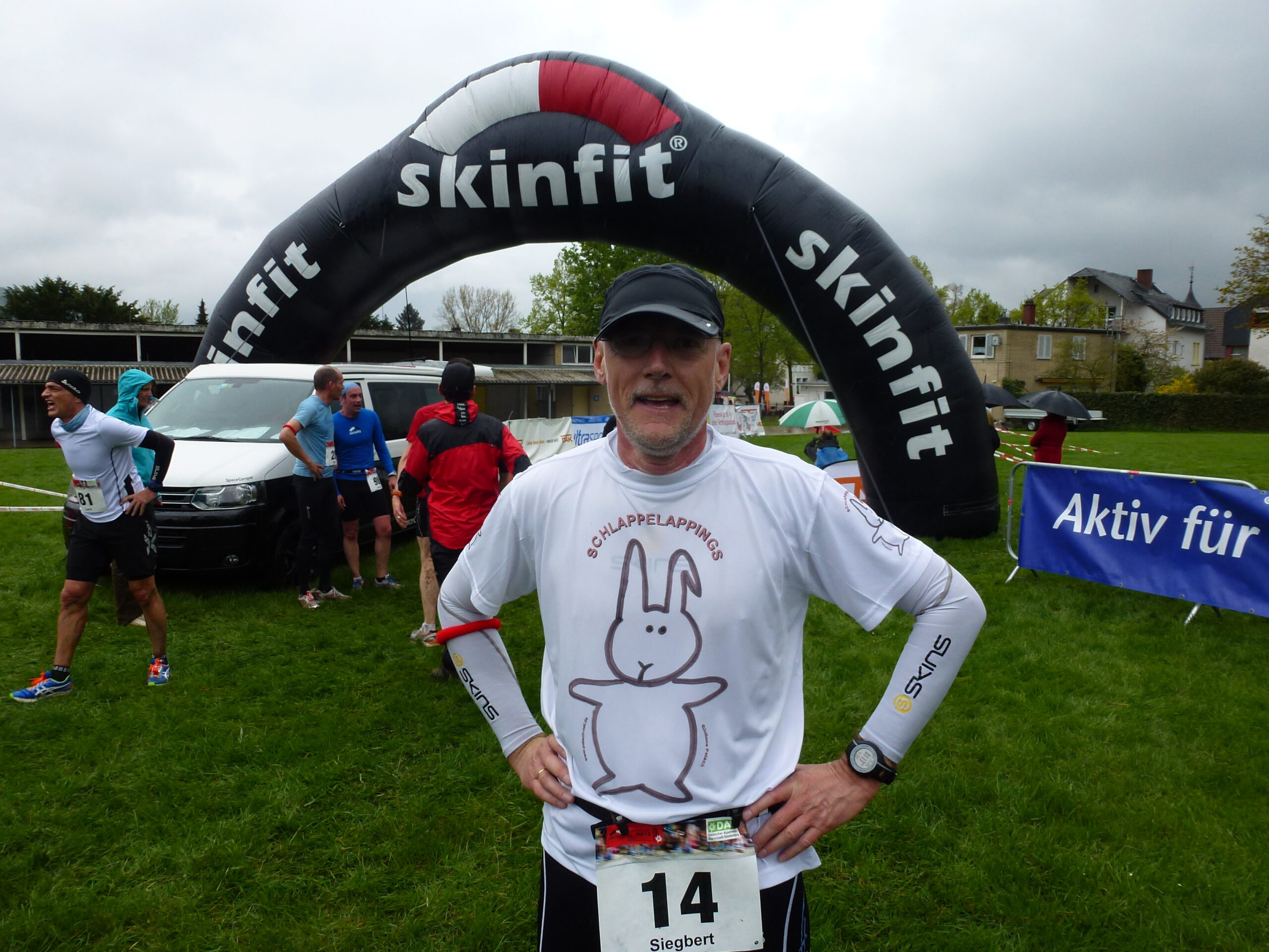 Auch bei der 6. Auflage des Skinfit-Frankensteinlaufs von Darmstadt-Eberstadt rannte ein Schlappelapping die 16 Kilometer und ca. 362 Höhenmeter ennuf und auch wieder enunner. Siegbert holte sich dabei als Dauergast des Frankensteinlaufs zum 5. mal in Folge den 1. Platz seiner Altersklasse. Das Wetter war allemal besser als 2015. Angenehme T-Shirt-Temperaturen (18°C), sonnige Abschnitte und kein Regen in Sicht machten den diesjährigen Lauf zum Genuss. Aber für “echte” Schlappelappings ist das Wetter beim Frankensteinlauf eher nebensächlich. Da wird aus Tradition immer ein “Lapping” an den Start gehen.