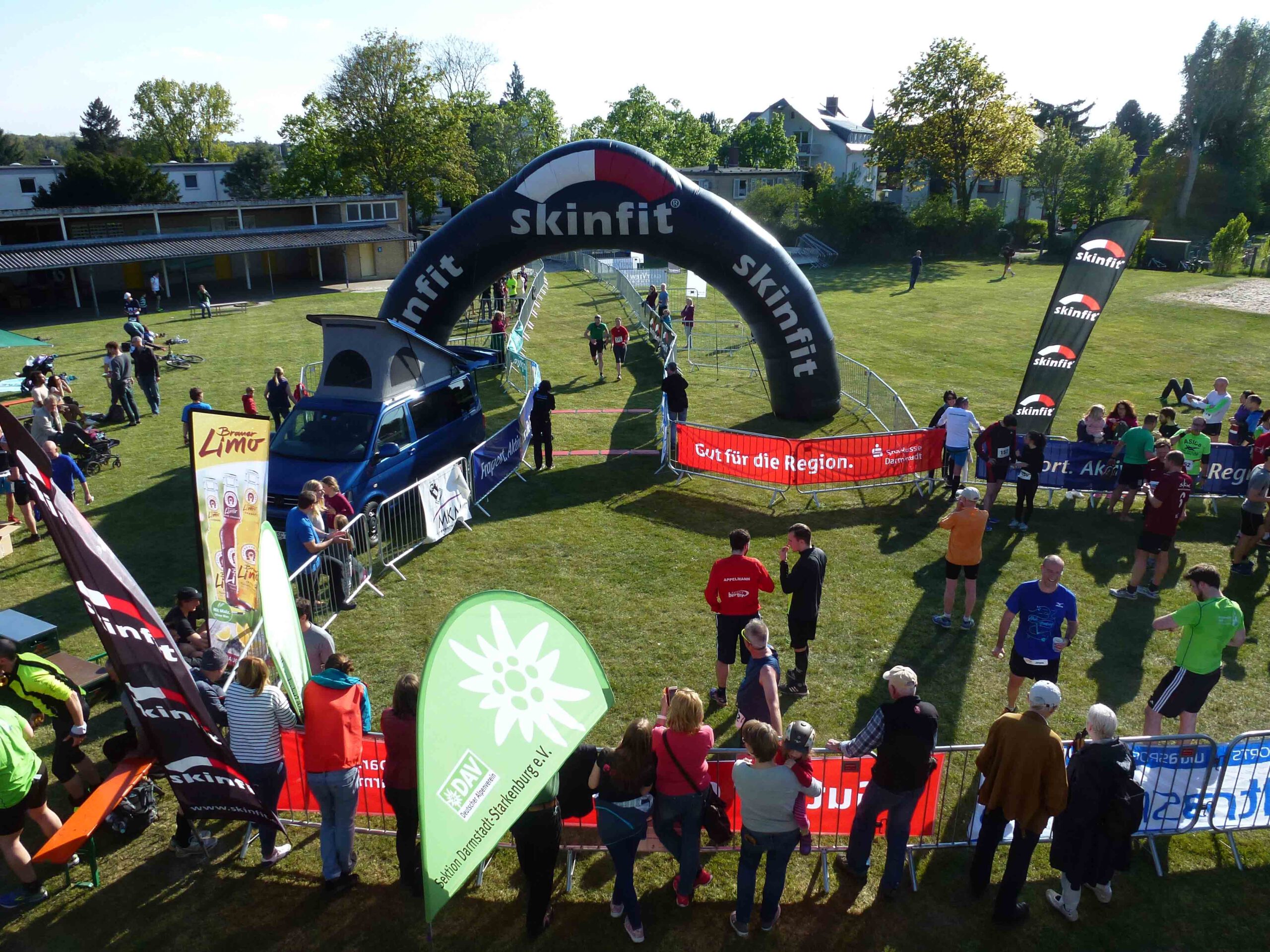 Zum Zieleinlauf: Axel lief mit 32 Minuten als 7. des 7km-Laufes ins Ziel und wurde damit 1. seiner AK. Siegbert kam mit 1:14 Std. ins Ziel und lief damit auf den 1. Platz seiner AK im 16km-Lauf.