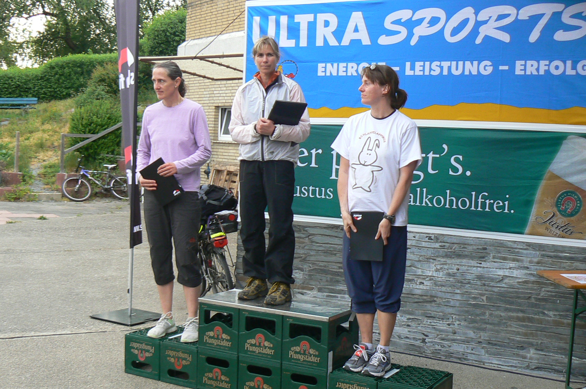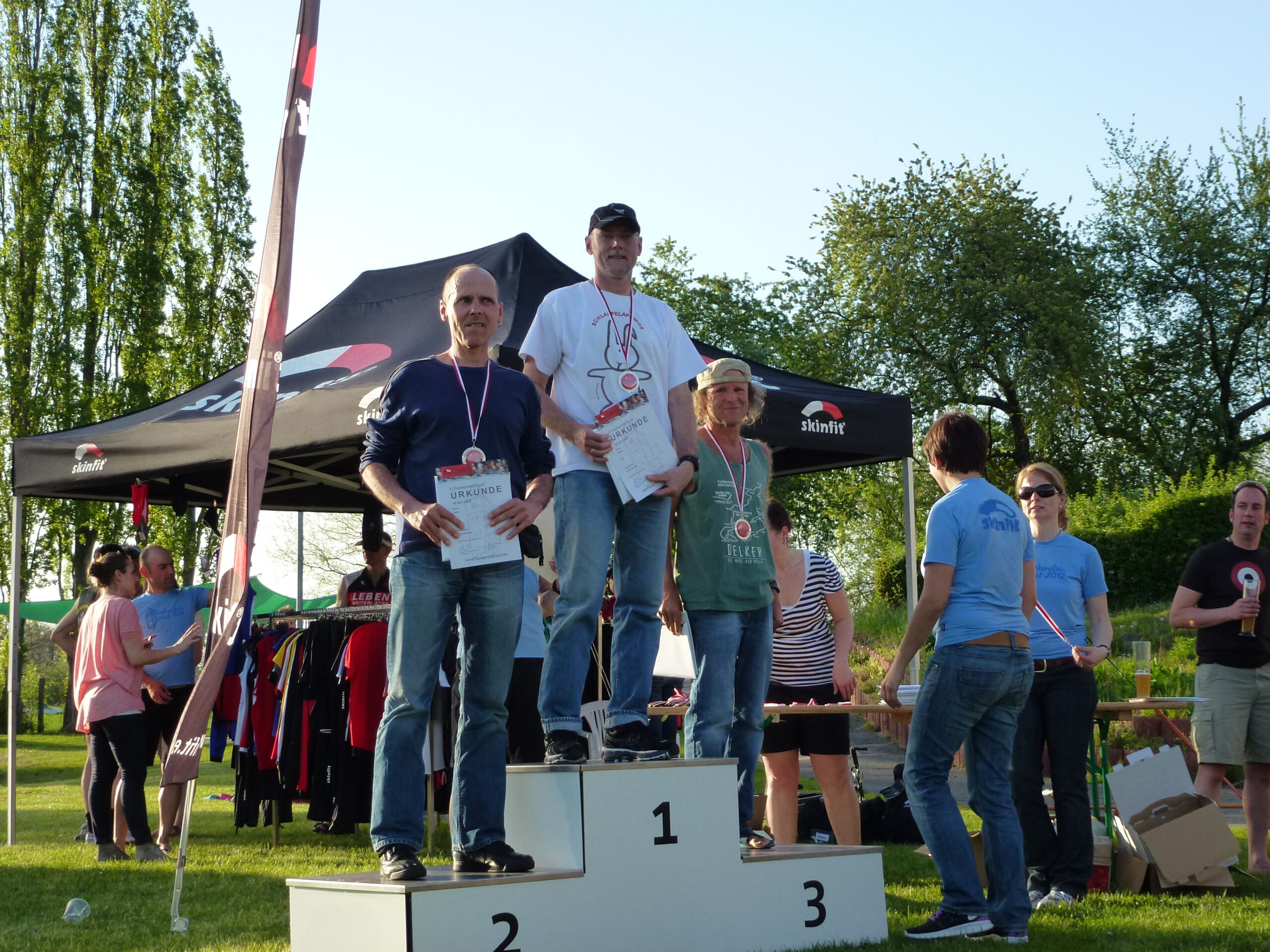 - Alle drei Schlappelappings ganz oben auf dem Stockerl! Siegbert im 16-km-Lauf mit 1:11 Std.