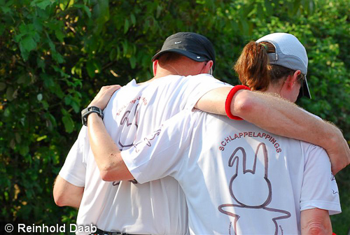 - Ausgepumpt, aber zufrieden schlendern die Schlappelappings zur Siegerehrung. (Bild mit Zustimmung von Reinhold Daab für www.laufreport.de)