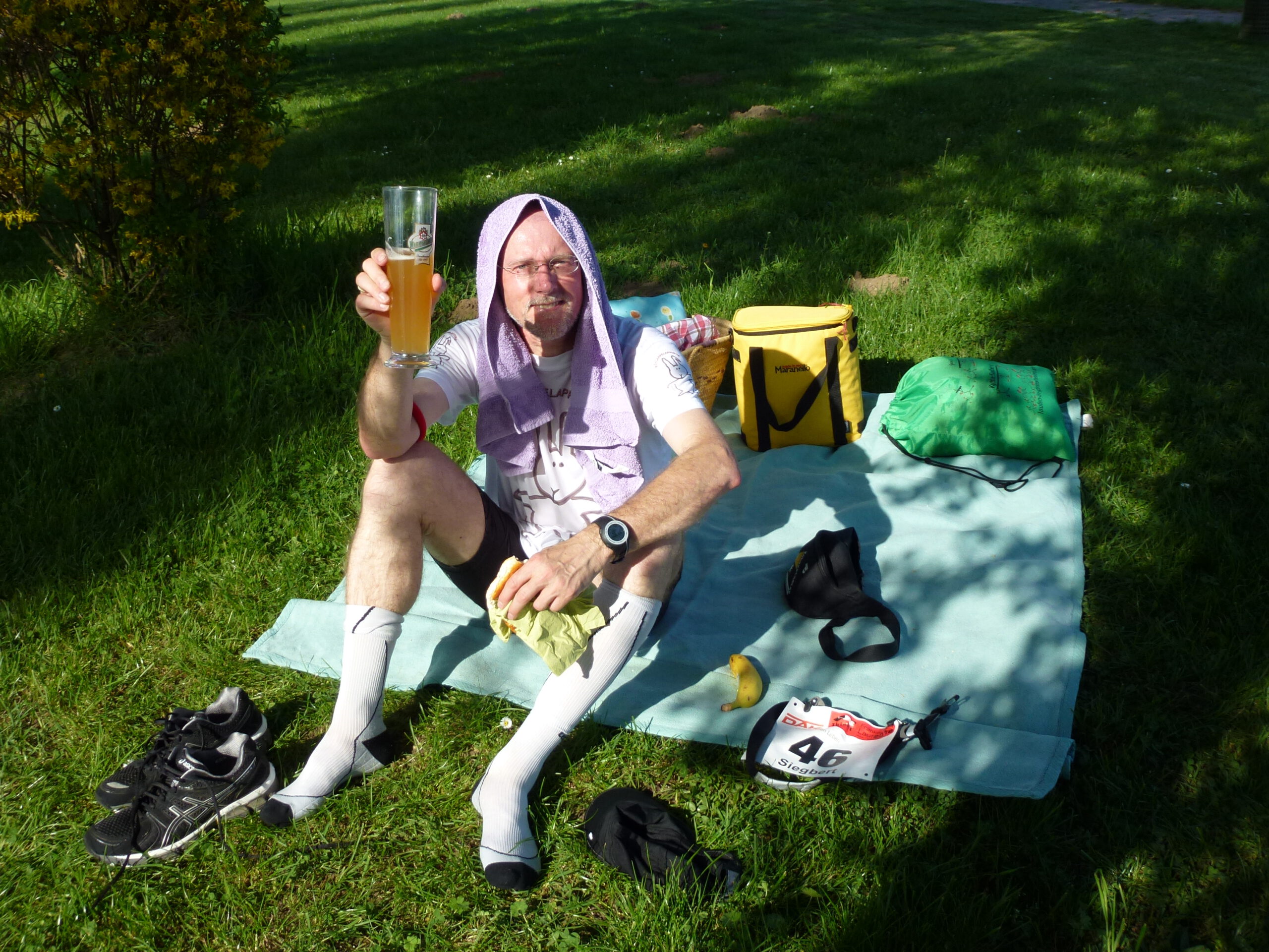- Ausgepumpt, aber zufrieden schlenzt Siegbert ein Darmstädter Weizen alkoholfrei.