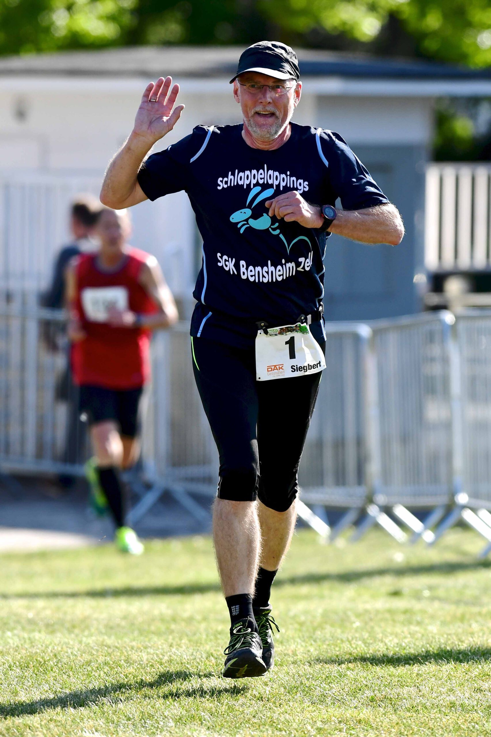 Sportlich gesehen war auch die 6. Auflage für die Schlappelappings erfolgreich. Siegbert wurde mit dem 1. Platz der Altersklasse belohnt und dies zum 5. mal in Folge. Er war nur 1 Minute langsamer als letztes Jahr und kam mit 1:12 Std. ins Ziel. Als Premiere lief er diesmal im Zeichen der SKG Bensheim-Zell.