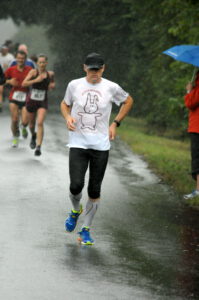 Auch in 2014 wollte Schlappelapping Siegbert den Wolf auf einsamen Waldwegen spielen und trat wieder beim Koberstädter Waldmarathon an.
