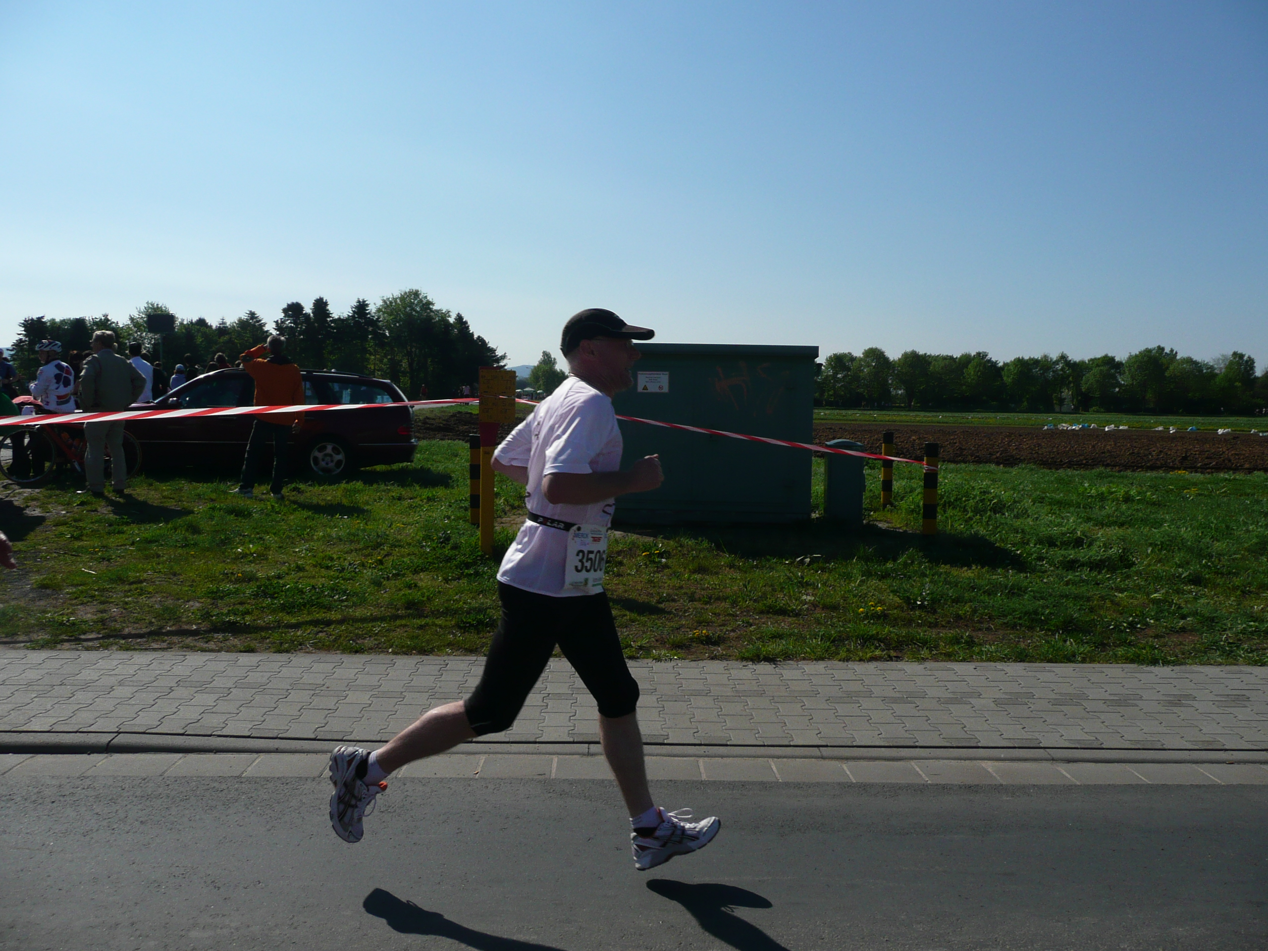 Schlappelapping Siggi auf dem Weg durch die Griesheimer Spargelfelder und zu seiner persönlichen Bestzeit von 1:32 Std. Damit ist er auf den 88. Platz gelaufen.