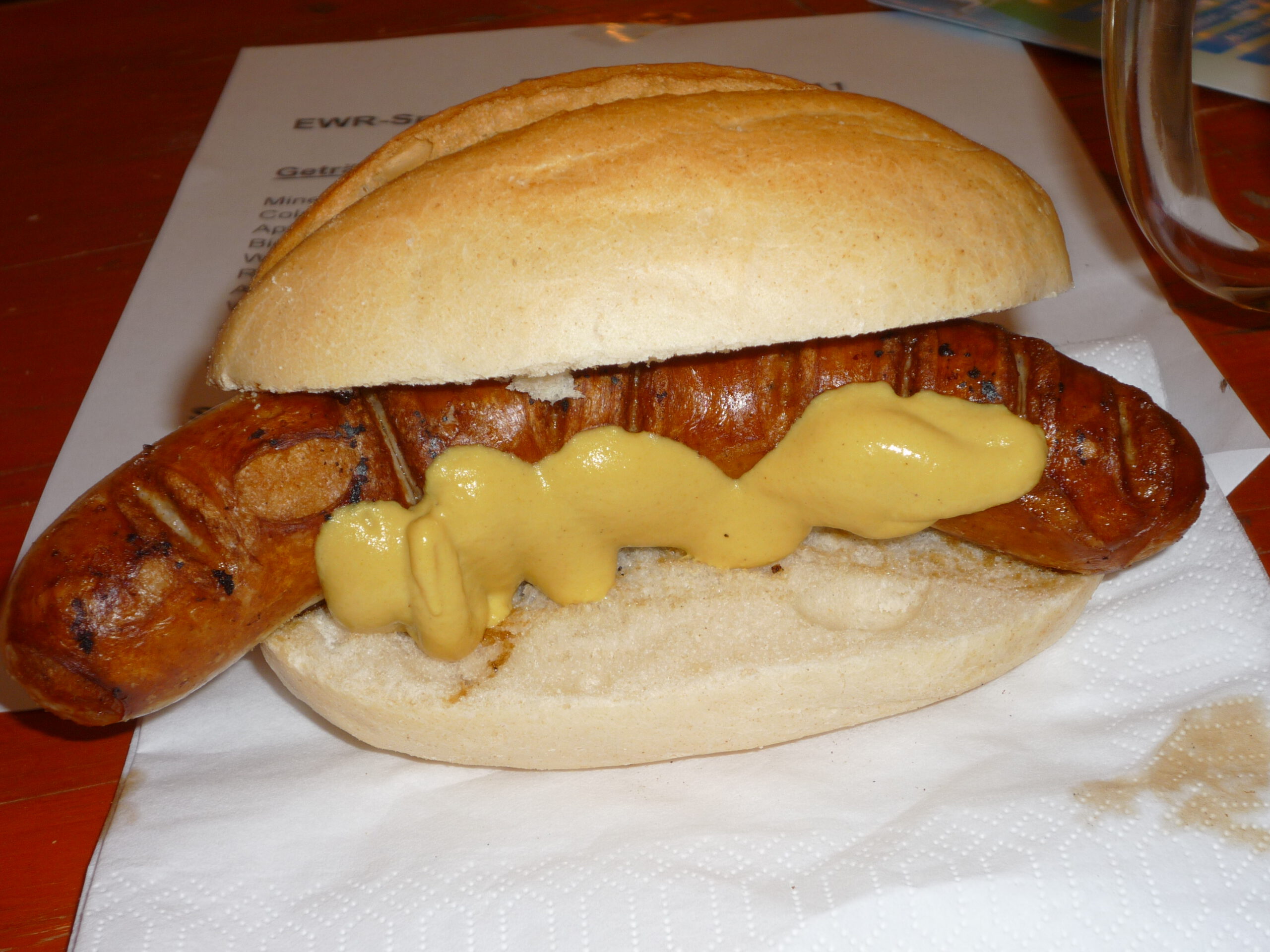 sehr gute Bratwurst im Innenbereich des Stadions vom Gasgrill