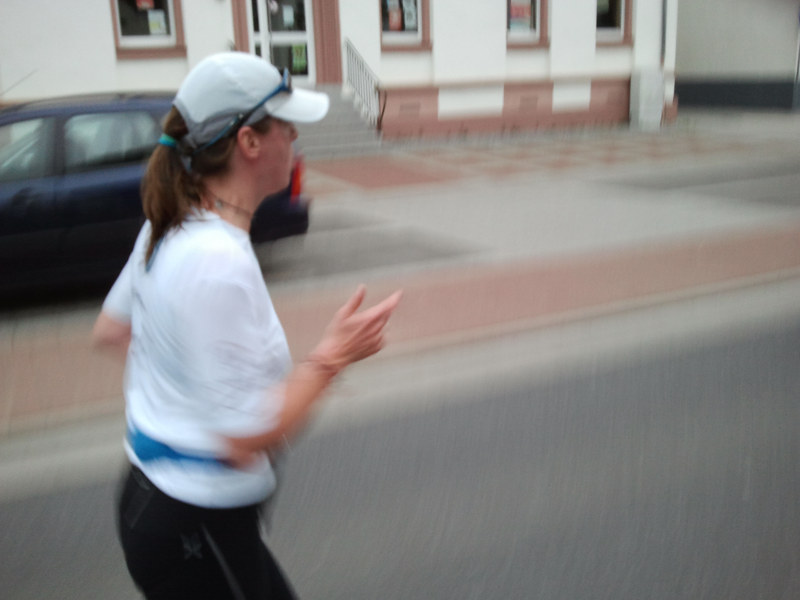 Schon beim Start war es warm und schwül. Es brauten sich erste dunkle Wolken zusammen und diese entluden sich dann während unseres Laufes in mehr oder weniger nahen Gewitter. Mit Vollkörperguss und Discoblitzen haben wir uns durch die Hitze bis ins Ziel gekämpft. Leider waren durch die Gewitter nur noch wenige Zuschauer in der Stadt, aber diese feuerten uns um so lauter an.
