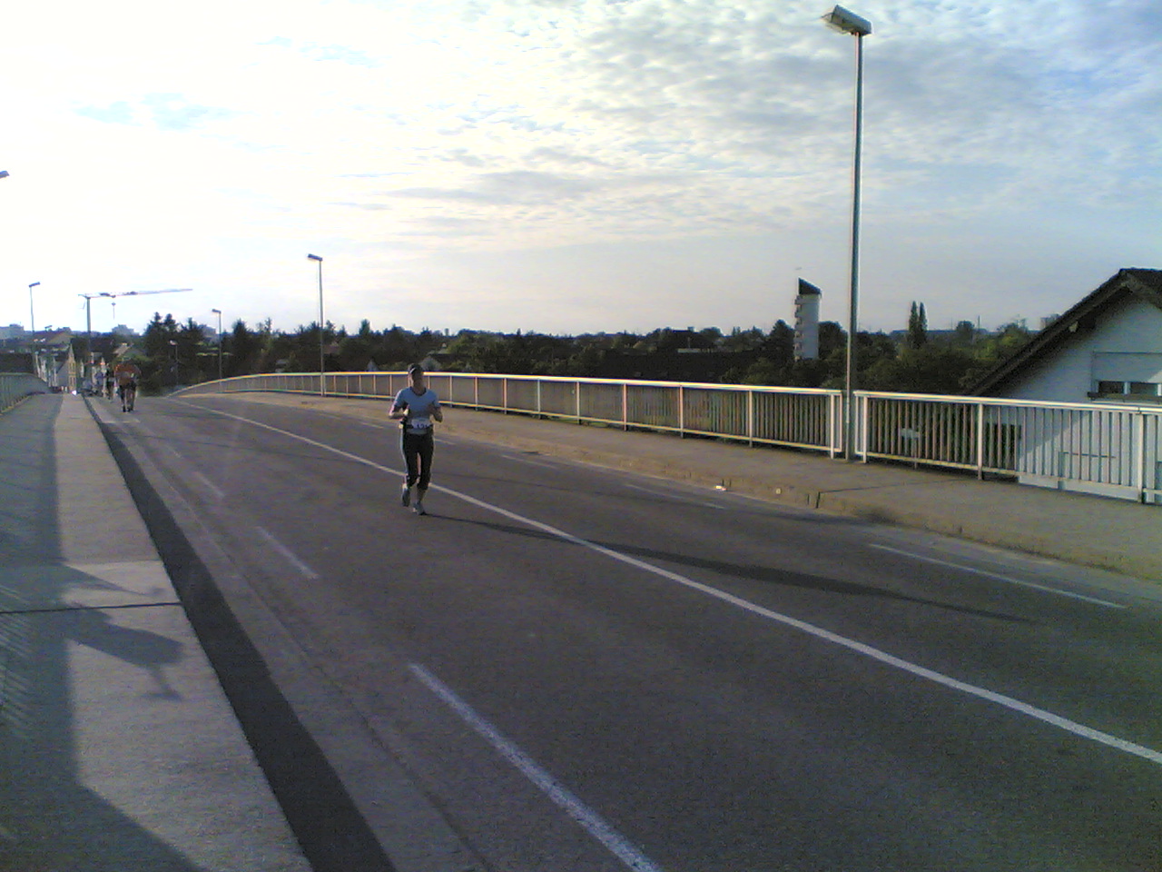 Wir hatten uns das Ziel gesetzt, dass Juliane mit 2 Std. Laufzeit durchs Ziel geht. Die Bedingungen waren sehr gut und es sah so aus als würden wir die 2 Std. sehr gut schaffen. Die Kondition war bestens. Auch wenn am Schluss die Steigungen über die Straßenbrücken für Juliane schon fast den Charakter von Bergläufen bekam und sie sich hinauf quälte, war Sie doch noch motiviert.