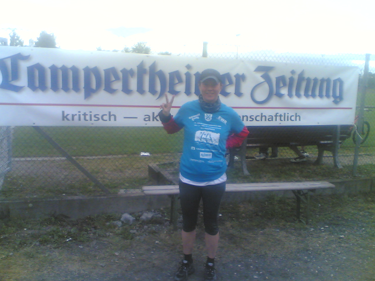 - Geschafft…. aber glücklich. Die Lappings sind heißgelaufen, aber dem Hitzetod entronnen. Das Finisher-T-Shirt war diesmal sogar ein Funktions-T-Shirt in akzeptabler Farbe. Nur die Bratwurst hätte heuer etwas besser sein können.