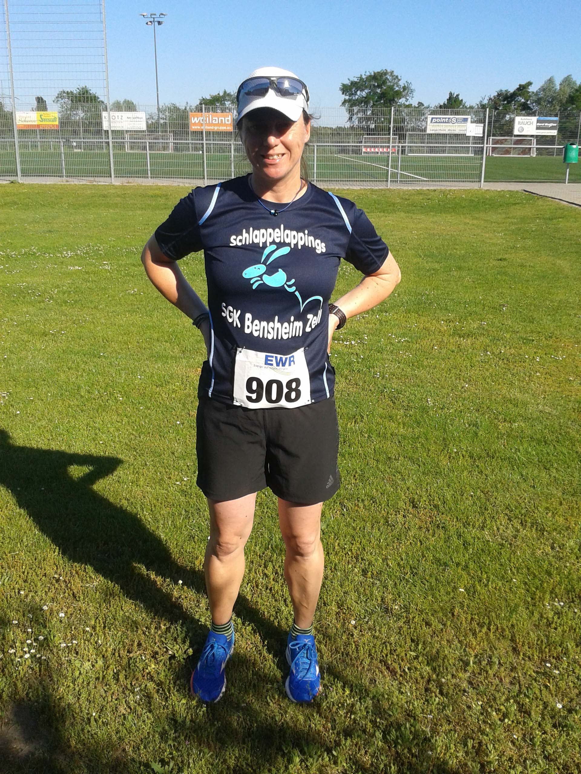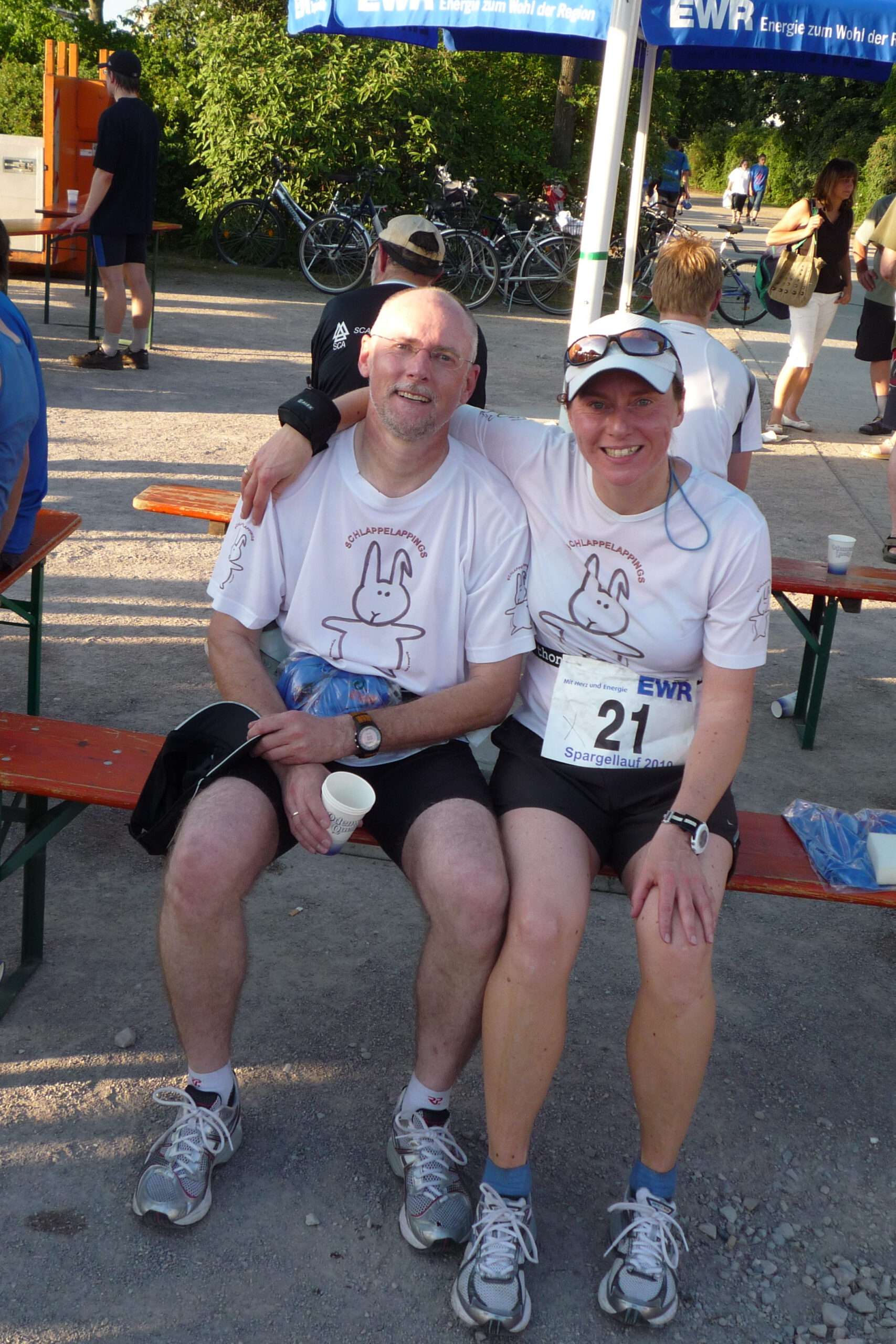 Mit 30 Grad im Schatten war das Laufwetter jenseits von Gut und Böse. Es war eine regelrechte Hitzeschlacht beim Lauf durch die Stadt und Spargelfelder die Bestzeiten nicht zuließ. Trotzdem oder gerade deswegen lief Juliane im 10km-Lauf bei den Frauen mit 53:38 Minuten auf den sensationellen 10. Platz der Frauen-Gesamtwertung und kam damit auf den 1. Platz der AK-Wertung. Schlappelapping Siegbert lief als 18. der Gesamtwertung und mit 1:44 Std. ebenfalls auf den 1. Platz der Altersklasse.