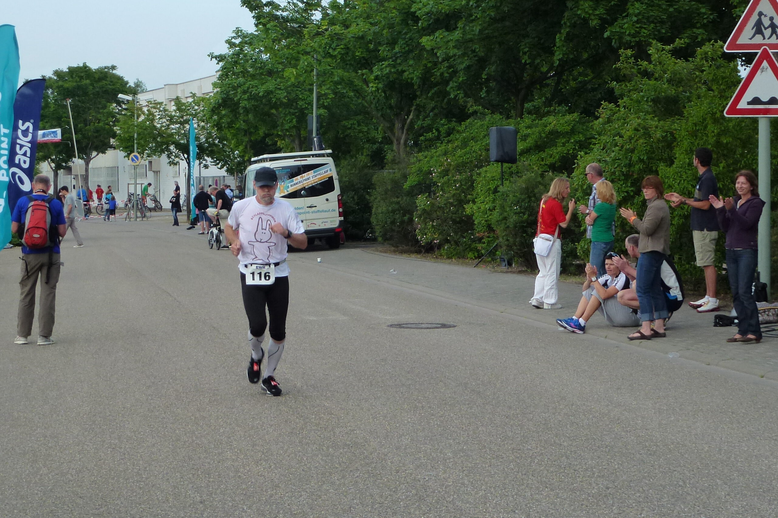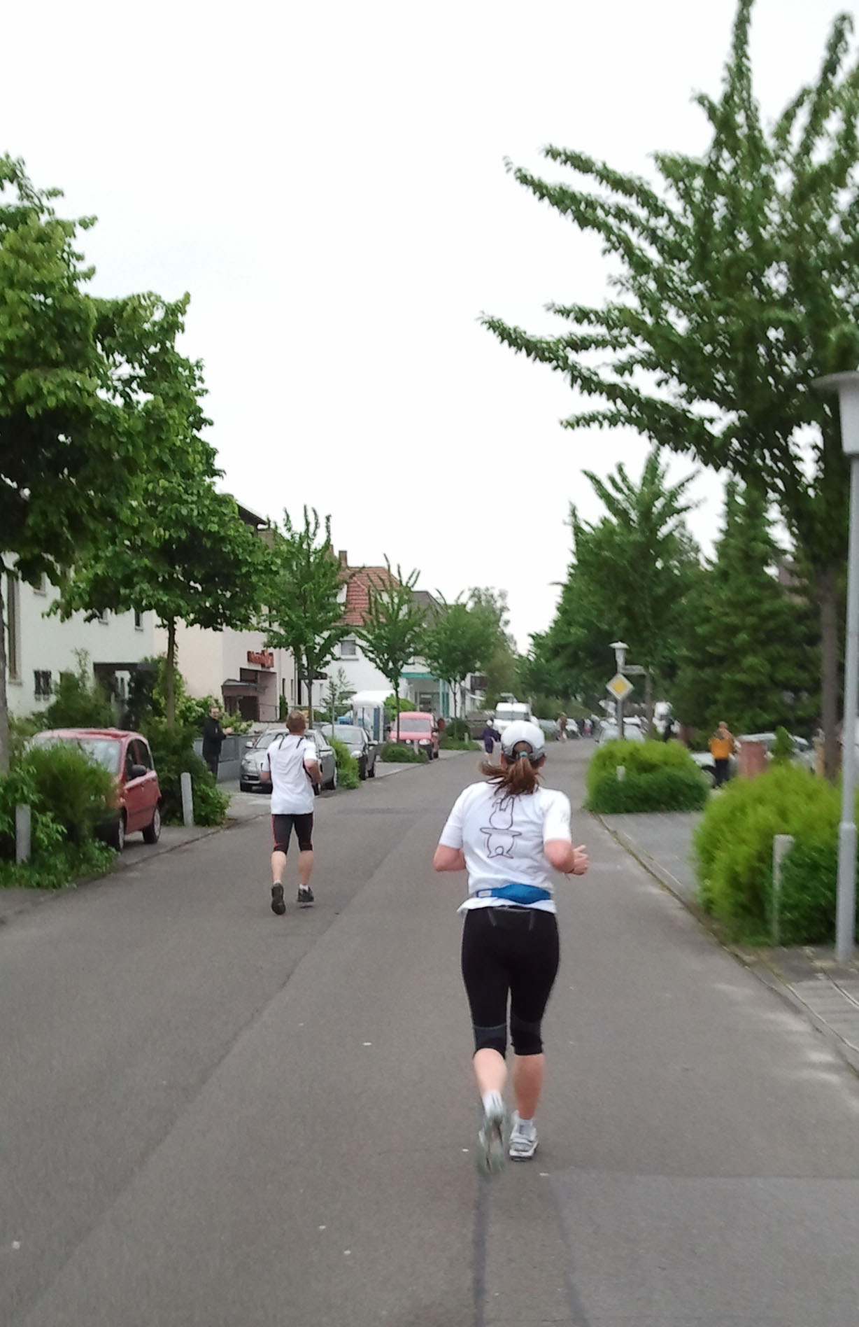 Schon beim Start war es warm und schwül. Es brauten sich erste dunkle Wolken zusammen und diese entluden sich dann während unseres Laufes in mehr oder weniger nahen Gewitter. Mit Vollkörperguss und Discoblitzen haben wir uns durch die Hitze bis ins Ziel gekämpft. Leider waren durch die Gewitter nur noch wenige Zuschauer in der Stadt, aber diese feuerten uns um so lauter an.