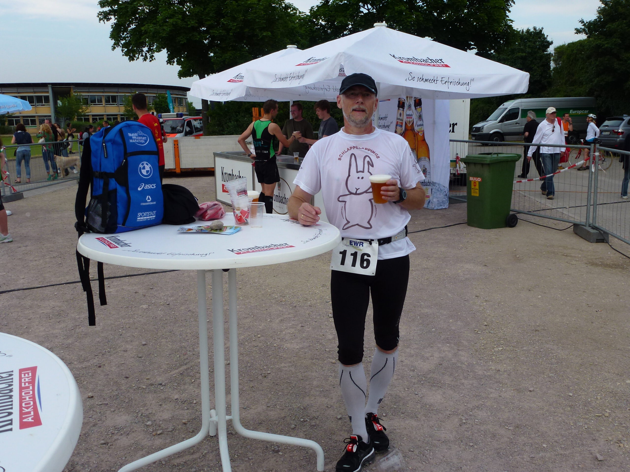 Auch diesmal konnte das Ziel nur lauten: “Ankommen ohne Sani!”. Bestzeiten waren da nicht drin. Der Schweiss floss in Strömen und im Kopf kreiste nur ein Gedanke: “Gleich gibt es Bier”, wenn auch nur Krombacher alkoholfrei.