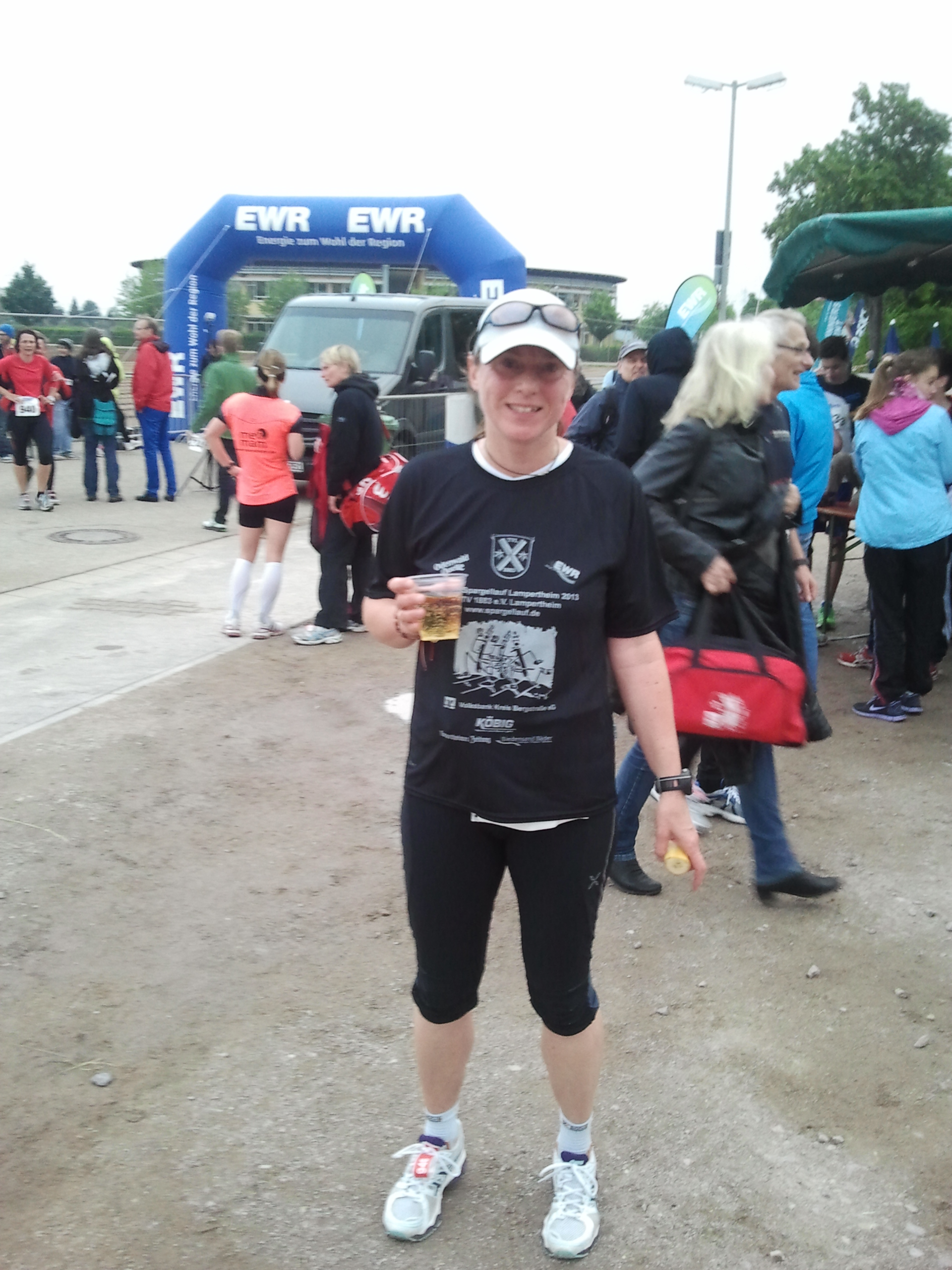 - Die letzten Meter sind die schlimmsten, aber danach ist man/frau mit einem Becher Apfelschorle, einer Banane und dem aktuelle Finisher-T-Shirt schon wieder lustig!