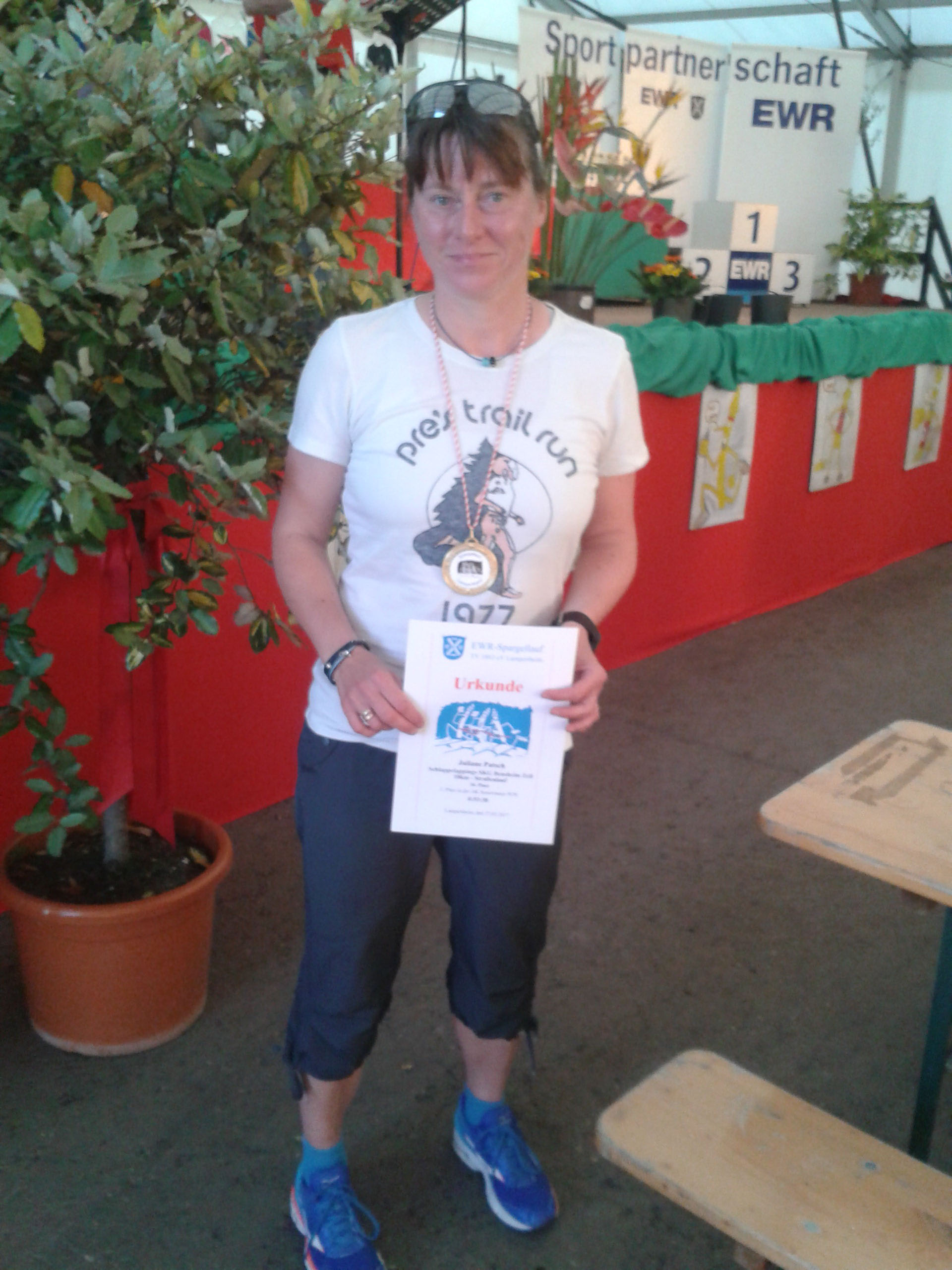 Obwohl Juliane bei den Frauen auf den 12. Platz der Gesamtwertung lief, fehlten ihr letztendlich 30 Sekunden für den 3. Platz der AK und damit einem Platz auf dem Stockerl. Die AK W45 war diesmal stark besetzt. Trotzdem war es für sie ein weiterer persönlicher Erfolg, da sie in diesem Jahr auch den zweiten HM durchlaufen konnte. Der Frust des Nichtlaufenkönnens von 2012 verschwindet so langsam.