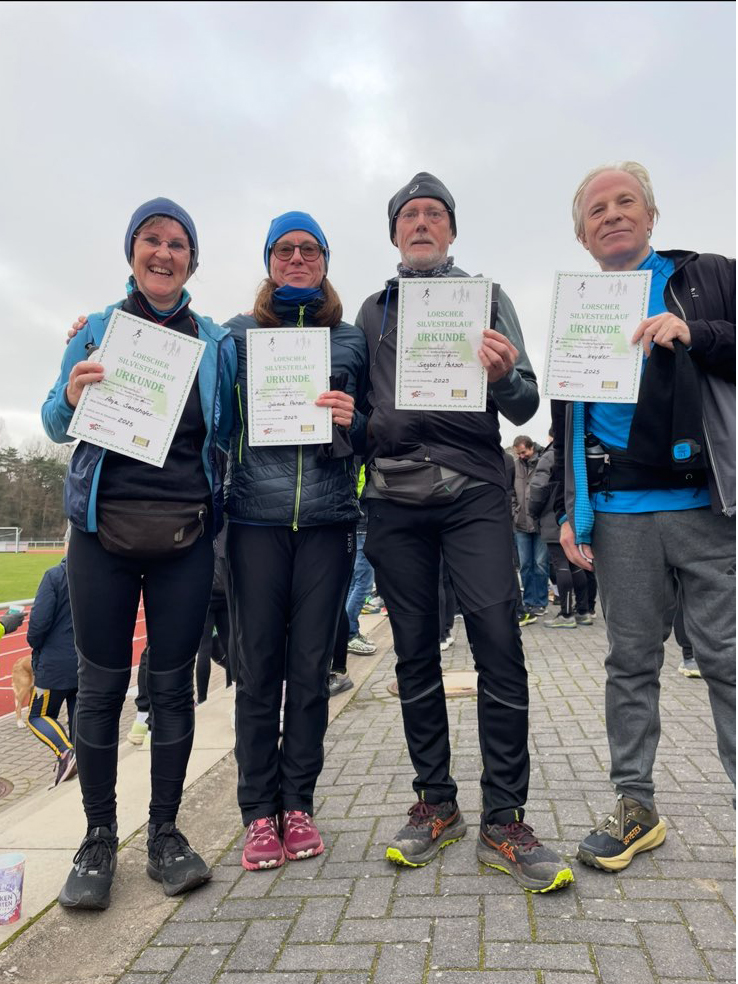 Die Läufer*innen des Lauftreffs Zell mit Anja, Juliane, Frank und Siegbert haben sich zu Silvester 2025 als Jahresabschluss den traditionellen Silvesterlauf in Lorsch über 5 bzw. 10 km als Trainingseinheit vorgenommen.