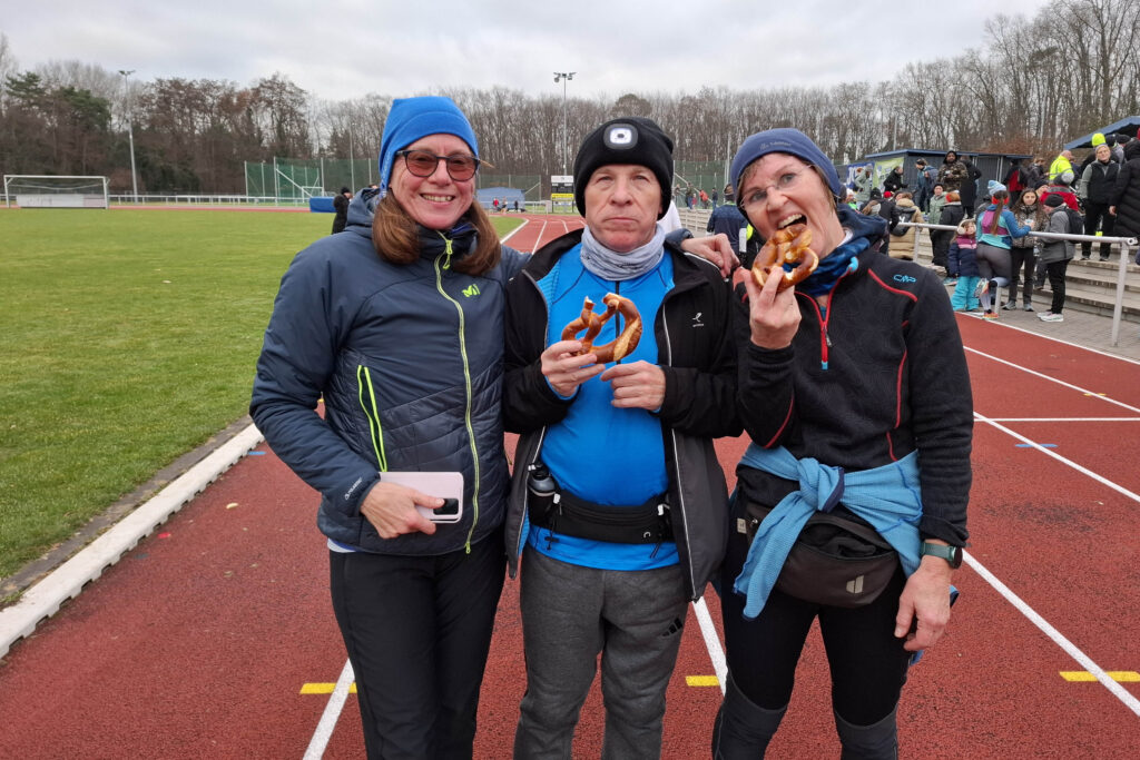 Bis kurz vor dem Start hatte es in Lorsch geregnet und dann war das Wetter dem LCO Lorsch gewogen. Bei milden Temperaturen um 10°C und trockenem Wetter wurde der Lauf im Stadion des LCO Lorsch um 14:00 Uhr gestartet. Es hatten sich erstaunlich viele andere Läufer*innen eingefunden, die es zu Silvester noch einmal wissen und locker 10 oder 5 Kilometer laufen oder walken wollten. Der gesamte Lauf ging wie letztes Jahr über breite Waldwege ohne nennenswerte Höhenunterschiede. Unterwegs waren einige Cross-Einlagen durch umgestürzte Bäume „eingebaut“ worden. Trotzdem waren es gute Voraussetzungen für eine schnelle Trainingsrunde. Nach dem Einlauf im Stadion standen bei Anja, Frank und Siegbert für den 10er 58 Minuten und bei Juliane für den 5er im Walking gute 37 Minuten auf der Uhr. Für einen Trainingslauf sind das gute Zeiten!